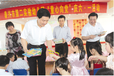 6月1日上午,市委書記張兆江,市委常委、宣傳部部長戴仁泉以及市教育局負(fù)責(zé)人來到市第二實(shí)驗幼兒園,看望慰問幼兒園的小朋友們,給小朋友們送去節(jié)日的祝福和禮物。 張兆江、戴仁泉等人一走進(jìn)第二實(shí)驗幼兒園,就聽到了小朋友們的歡歌笑語,幼兒園的小朋友正在開展各類游戲活動。 在幼兒園負(fù)責(zé)人的陪同下,張兆江走進(jìn)活動室,觀看孩子們做游戲,并向幼兒園負(fù)責(zé)人了解了孩子們的學(xué)習(xí)生活情況、幼兒園的各項保障情況?吹胶⒆觽冋谕驷烎~游戲,張兆江興致勃勃地接受了小朋友們的邀請,與孩子們一起玩起了釣魚游戲,進(jìn)行釣魚比賽。每走進(jìn)一間活動室,張兆江都要饒有興趣地了解孩子們游戲開展情況,與孩子們進(jìn)行互動。在第二實(shí)驗幼兒園“童心向黨”慶六一活動現(xiàn)場,張兆江向孩子們送上了節(jié)日的祝愿。他對孩子們說:“我們幾位爺爺代表爺爺奶奶們、代表叔叔阿姨們,祝你們兒童節(jié)快樂,也祝我們?nèi)兴械膬和?jié)日快樂,能夠健康成長,希望你們在學(xué)校好好學(xué)習(xí),天天向上,能夠健康成長,成為我們泰興優(yōu)秀的人才。” 張兆江、戴仁泉為孩子們送上了連環(huán)畫、童話故事等書籍。在孩子們的邀請下,張兆江、戴仁泉坐到了觀眾席,觀看第二實(shí)驗幼兒園“童心向黨”慶“六一”演出,與幼兒園的老師、孩子們一起慶祝“六一”兒童節(jié)。 幼兒園老師和孩子們表演了獨(dú)唱、舞蹈、合唱等文藝節(jié)目,演出精彩紛呈,一首首經(jīng)典紅歌博得掌聲陣陣,張兆江、戴仁泉深受感染,和孩子們一起打起了節(jié)拍,并與幼兒園師生合影留念。 張兆江指出,幼兒教育十分重要,幼兒園負(fù)責(zé)人和老師們要注重細(xì)節(jié),關(guān)心照顧好每一個孩子;育人比傳授學(xué)業(yè)更重要,老師是孩子的榜樣,要以良好的師德和自己的言行影響孩子,讓孩子們在幼兒園養(yǎng)成良好的品德和行為習(xí)慣。 |