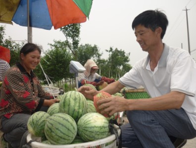 (記者 葉余華 特約記者 戴敏)“瓜好不愁賣!”6月15日,古溪鎮(zhèn)野芹村西瓜園的主人吳岳林高興地說,嚴格執(zhí)行國家無公害標(biāo)準(zhǔn)種植的西瓜,生長期短、口感好,上市后供不應(yīng)求。 西瓜堪稱“瓜中之王”,一年生蔓性草本植物。因是在漢代從西域引入,故稱“西瓜”。西瓜果瓤脆嫩,甘味多汁,含有豐富的礦物鹽和多種維生素,清熱解暑,是盛夏佳果,對治療腎炎、糖尿病及膀胱炎等疾病有輔助療效,深受人們喜愛。 古溪鎮(zhèn)野芹村西瓜園由“中國西瓜之鄉(xiāng)”東臺的西瓜大戶吳岳林等9個老板投資興建,占地700畝。吳岳林說,東臺人種植西瓜已有800多年的歷史。近年來,東臺市著力實施農(nóng)產(chǎn)品品牌化戰(zhàn)略,相繼創(chuàng)出無公害西瓜、綠色西瓜、有機西瓜,現(xiàn)又提升到原產(chǎn)地西瓜。 為了滿足人們對“東臺西瓜”的渴望,野芹西瓜園種植了早春紅玉、特小鳳、8424三個小果型西瓜,一般單重為1.5~2.0KG,產(chǎn)量5000多斤/畝。這種小果型西瓜種子特小,外皮淡綠青色條紋,口感細膩、甘甜多汁、營養(yǎng)豐富,是消暑解渴佳品。 野芹西瓜按照無公害西瓜生產(chǎn)技術(shù)操作規(guī)程,采用大棚多層覆蓋保護地栽培、人工授粉和利用蜜蜂授粉,施用有機肥料和鉀肥,實現(xiàn)了真正的自然原生態(tài)。吳岳林說,由于從果型大小、色澤到內(nèi)在品質(zhì)均適應(yīng)市場需求,雖然價格比同類瓜要高,但銷路非常好。 “每天賣瓜忙得不可開交,哪能滯銷?”吳岳林介紹,6月中旬以來,西瓜銷售進入旺季,他們每天要向上海、蘇州、無錫發(fā)幾車的西瓜。目前,地頭的批發(fā)價在0.65元/斤左右,零售價格一般在1~1.5元/斤。“綠色”西瓜真的不愁賣。 |