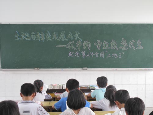 在紀(jì)念土地日來臨之際,6月22日下午,泰興國土局宣堡分局來到宣堡鎮(zhèn)中心小學(xué)宣傳土地法律法規(guī),讓廣大師生更全面地了解我國土地資源的狀況,形成自覺地節(jié)約保護(hù)耕地的觀念,并將這種觀念延伸至家庭和社會。