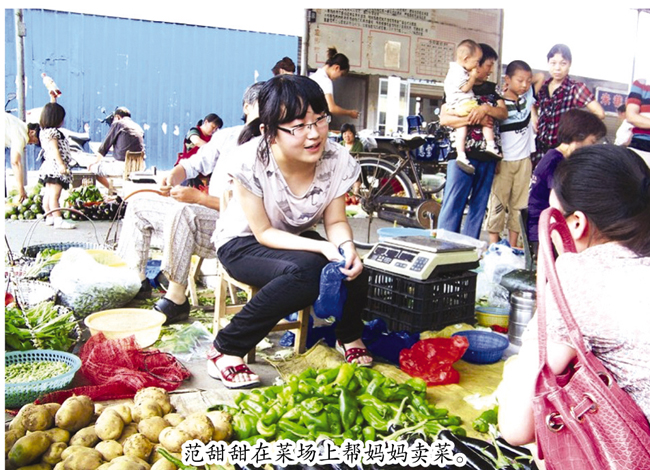 。ㄌ丶s記者 姚翔)右手先天畸形,做什么都只能靠左手,范甜甜知道自己和正常孩子不一樣,學(xué)習(xí)非?炭,高考過了本一分數(shù)線。她家境比較窘迫,為了籌集學(xué)費,高考后每天幫媽媽去賣菜。 菜場上的準大學(xué)生 6月28日上午,記者來到了黃橋小學(xué)附近的一家菜場,其中一個蔬菜攤位尤其引人注目。攤主是一對母女,二人各守半邊,不時有顧客來買菜。介紹菜價、稱秤、裝袋、遞給顧客,女孩十分嫻熟老練。 女孩名叫范甜甜,今年19歲,家住黃橋鎮(zhèn),剛從黃橋中學(xué)畢業(yè)。“這次考了352分,應(yīng)該可以考得更好些。”范甜甜輕聲細語地說。聽說有個準大學(xué)生在賣菜,顧客們紛紛涌過來。 媽媽何小平今年43歲,面容略顯蒼老,見大伙都很羨慕,她臉上寫滿了自豪。 何小平家里共六口人,丈夫范富生患類風(fēng)濕性關(guān)節(jié)炎喪失了勞動能力,全靠她賣菜所得及公公微薄的退休金生活。女兒很懂事,高考結(jié)束后沒睡過一天懶覺,每天早上5點多就起床,陪她去菜場賣菜。學(xué)了一兩天,范甜甜就會賣菜了。有了女兒幫忙,何小平輕松了不少,營業(yè)額也略有增加。最近菜價上漲,生意不是太好,母女倆總要堅持到中午12點才回家。 “上大學(xué)要花不少錢,我們要一分一分地攢。”范甜甜說。 小有名氣的“左撇子” 父親范富生說,范甜甜出生不久,就發(fā)現(xiàn)她的右手生長緩慢,經(jīng)診斷系先天性右手畸形。范甜甜被迫把右手的“活”全部轉(zhuǎn)交給左手。 從洗臉、刷牙、穿衣服開始,范富生讓女兒用左手。上幼兒園要學(xué)寫字了,別的小朋友都用右手,范富生逼女兒用左手寫字。“得從小讓她明白自己和別的孩子不一樣。”慢慢地,范甜甜學(xué)會用左手寫一筆好字。范甜甜不但字寫得好,而且速度一點也不比普通人慢。 為了掩飾殘疾,范甜甜習(xí)慣用左手拿書包和課本,刻意遮掩住右手。平時范甜甜要么穿長袖的衣服,要么將右手插在褲袋里。從小學(xué)到高中,很多同學(xué)都以為她是左撇子。 范甜甜清楚地記得,一次老師叫她到黑板上答題。她走上去,用左手拿起粉筆,寫下一行行娟秀挺拔的字,同學(xué)們都十分驚訝。“能寫好字證明我不比別的孩子差。”范甜甜說,“左撇子”令她在學(xué)校小有名氣。 到大學(xué)要勤工儉學(xué) 當(dāng)天上午賣菜結(jié)束后,范甜甜準備下午去學(xué)校填報高考志愿。“我選擇了財會專業(yè)。”范甜甜說,她準備報江蘇大學(xué)和揚州大學(xué),目前每天幫媽媽賣菜籌點學(xué)費。到大學(xué)后打算一邊學(xué)習(xí)一邊打工,一來養(yǎng)活自己減輕家里負擔(dān),二來可以積累工作經(jīng)驗。 雖然生活能夠自理,但對范甜甜來說外出上學(xué)還是有點困難的,尤其是冬天洗衣服。由于右手使不上力,因此范甜甜平時在家只能洗些單衣,冬天的棉襖和羽絨服之類的衣服都是媽媽洗。“我打算以后自己洗,鍛煉一下自己。” 知道大學(xué)生就業(yè)形勢嚴峻,范甜甜為自己在大學(xué)期間立下了目標,先考會計師,再考注冊會計師。“這樣畢業(yè)后好找工作,能早點掙錢寄回家。” |