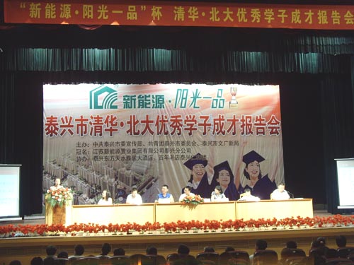 (記者 周冰)7月16日,由市委宣傳部、團(tuán)市委、市文廣新局聯(lián)合舉辦的“新能源·陽(yáng)光一品杯”第七屆清華、北大學(xué)子成才報(bào)告會(huì)在市影視城舉行。清華、北大學(xué)子王益勤、孫映寧、季進(jìn),復(fù)旦大學(xué)、交通大學(xué)學(xué)子尹凱、王一凡敘述了各自的求學(xué)經(jīng)歷,介紹了各自的學(xué)習(xí)方法和經(jīng)驗(yàn)。徐州師范大學(xué)的殘疾少年王寧講述了自己自強(qiáng)不息的奮斗歷程,給慕名而來(lái)的學(xué)生、家長(zhǎng)上了生動(dòng)的一課。 “聆聽(tīng)清華、北大學(xué)子成才報(bào)告會(huì)后,我深刻體會(huì)到,輕松學(xué)習(xí)的奧秘在于掌握好的學(xué)習(xí)方法與技巧,不僅要對(duì)課本內(nèi)容有深刻理解,更要對(duì)課外知識(shí)廣泛涉獵,還要加強(qiáng)身體鍛煉,時(shí)刻保持良好的精神狀態(tài)。”濟(jì)川北校學(xué)生蔣一嘯說(shuō)。 |