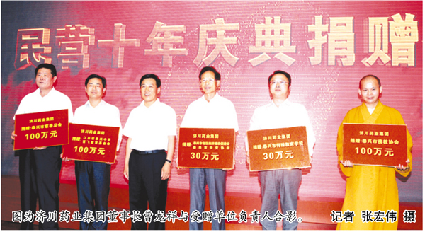 9月10日下午,濟(jì)川藥業(yè)集團(tuán)舉行隆重的典禮,慶祝企業(yè)改制為民營(yíng)企業(yè)10年來所取得的輝煌發(fā)展成就。泰州市領(lǐng)導(dǎo)楊峰、胡冬生及省市相關(guān)部門負(fù)責(zé)人,張兆江、高亞梓等我市領(lǐng)導(dǎo)和部分園區(qū)、鄉(xiāng)鎮(zhèn)、部門主要負(fù)責(zé)人參加了慶典。 慶典活動(dòng)通過詩朗誦、專題片等形式回顧了濟(jì)川集團(tuán)改制為民營(yíng)企業(yè)后,在市場(chǎng)營(yíng)銷、產(chǎn)品研發(fā)、人才引進(jìn)、企業(yè)文化建設(shè)等方面取得的喜人成就。2001年,濟(jì)川藥業(yè)改制為民營(yíng)企業(yè)。改制10年來,企業(yè)不斷強(qiáng)化市場(chǎng)開拓和產(chǎn)品研發(fā),經(jīng)濟(jì)規(guī)模不斷壯大,從一個(gè)資不抵債1790多萬元的企業(yè),發(fā)展成為年銷售23.89億元、納稅2.1億元的重點(diǎn)骨干企業(yè)。 泰州市委常委、常務(wù)副市長(zhǎng)楊峰,泰州市衛(wèi)生局局長(zhǎng)顧弘慶,我市市委書記張兆江等分別致辭,對(duì)濟(jì)川藥業(yè)10年發(fā)展取得的成就表示祝賀。 張兆江說,濟(jì)川藥業(yè)是全市的重點(diǎn)骨干企業(yè),更是醫(yī)藥產(chǎn)業(yè)的龍頭企業(yè)。10年的發(fā)展,濟(jì)川藥業(yè)在全國(guó)醫(yī)藥行業(yè)確立了應(yīng)有的位置,為全市經(jīng)濟(jì)社會(huì)的科學(xué)跨越發(fā)展作出了重要貢獻(xiàn)。張兆江希望濟(jì)川藥業(yè)以民營(yíng)10周年為契機(jī),立足新起點(diǎn),確立新標(biāo)桿,謀求新跨越。要始終以做大做強(qiáng)為目標(biāo)追求,加大開發(fā)投入力度,加快濟(jì)川藥業(yè)工業(yè)園二期工程建設(shè),不斷強(qiáng)化市場(chǎng)營(yíng)銷,積極推進(jìn)企業(yè)上市,早日實(shí)現(xiàn)翻一番、超百億的目標(biāo)。 張兆江指出,醫(yī)藥產(chǎn)業(yè)是泰興的支柱產(chǎn)業(yè),也是“十二五”期間全市產(chǎn)業(yè)培育的重點(diǎn)方向。作為全市醫(yī)藥產(chǎn)業(yè)的龍頭企業(yè),濟(jì)川藥業(yè)要始終以創(chuàng)新發(fā)展為根本路徑,努力做全市產(chǎn)業(yè)、企業(yè)轉(zhuǎn)型發(fā)展的排頭兵。市委、市政府及各園區(qū)、鄉(xiāng)鎮(zhèn)(街道)、部門將一如既往地關(guān)心和支持企業(yè)發(fā)展,努力為企業(yè)提高多層次、多方位的服務(wù),促進(jìn)企業(yè)健康、持續(xù)、快速發(fā)展。 濟(jì)川藥業(yè)集團(tuán)董事長(zhǎng)曹龍祥回顧總結(jié)了企業(yè)10年的發(fā)展成就和經(jīng)驗(yàn),并向市慈善總會(huì)、泰興中學(xué)、黃橋老區(qū)經(jīng)濟(jì)建設(shè)促進(jìn)會(huì)、特殊教育學(xué)校和佛教協(xié)會(huì)捐款,捐款總額360萬元。濟(jì)川藥業(yè)集團(tuán)干部員工一起合唱濟(jì)川藥業(yè)主題歌《遠(yuǎn)航》,祝福企業(yè)踏上新一輪發(fā)展征程。 |