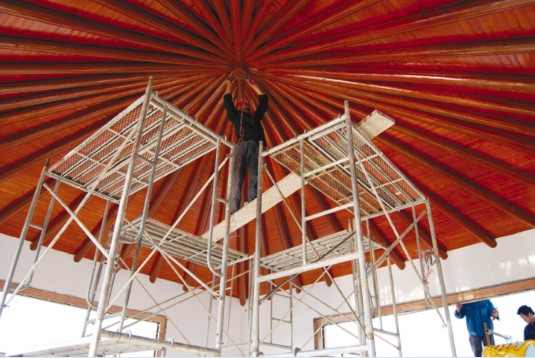 圖為工作人員正在對農場最大單體餐廳進行裝修。