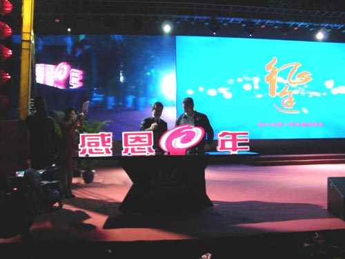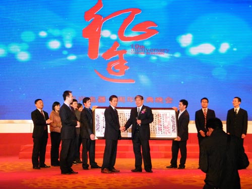 職工獻(xiàn)上公司10歲生日繡匾 江蘇廣播電視總臺(tái)衛(wèi)視頻道當(dāng)紅主持人、導(dǎo)演金海寧主持并領(lǐng)攜眾明星亮相科興電器“征途·感恩10年”大型慶典晚會(huì)。 |