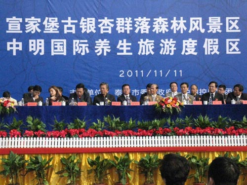 宣家堡古銀杏群落森林風景區(qū)由浙江中明控股集團總投資,項目總投資一百億人民幣,建設(shè)周期為6-8年。將以銀杏養(yǎng)生為軸,在現(xiàn)有古銀杏群落森林風景區(qū)建設(shè)的基礎(chǔ)上,打造古銀杏群落森林養(yǎng)生旅游度假區(qū)、生態(tài)旅游文化娛樂區(qū)、生態(tài)新城建設(shè)區(qū)三大板塊,重點建設(shè)銀杏博物館、養(yǎng)生度假區(qū)、主題廣場、文化街區(qū)、清明上河圖、歡樂谷、三面觀音、蘇中“七戰(zhàn)七捷”紀念館等景點。其中,一期工程投資15億元人民幣,主要建設(shè)景區(qū)東大門、核心區(qū)河道水系、清明上河圖、銀杏科技展覽館等八大工程。