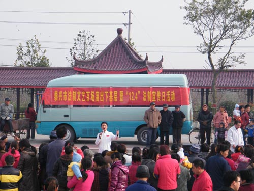 (記者 葉余華 特約記者 陳旭霞)12月4日是“六五”普法實(shí)施后的第1個(gè)全國法制宣傳日。這天上午,張橋鎮(zhèn)西橋村村民歡聚在萬壽廣場(chǎng),欣賞了一場(chǎng)豐富多彩的法制文藝節(jié)目。至此,我市法制文藝百場(chǎng)演出下基層暨12.4法制宣傳活動(dòng)拉開序幕。