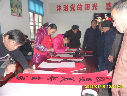 (特約記者 游潔 陶愛(ài)萍 陳嘉儀 記者 孫紀(jì)剛)1月15日上午,虹橋敬老院內(nèi)暖意融融,氣氛熱烈!缎≈魅藞(bào)》泰興新聞學(xué)校兩位擅長(zhǎng)書(shū)法的小小書(shū)法家和中國(guó)硬筆書(shū)法家協(xié)會(huì)會(huì)員、一級(jí)書(shū)法導(dǎo)師程飛正在這里為老人們免費(fèi)書(shū)寫(xiě)“福”字和春聯(lián)。 “沐浴黨的陽(yáng)光,感受美好生活”。老少三位書(shū)法家筆走龍蛇,一幅幅或蒼勁有力、或圓潤(rùn)飽滿,透著喜慶吉祥的春聯(lián)很快就呈現(xiàn)在老人們面前。經(jīng)過(guò)稚嫩的小手點(diǎn)染,小小的春聯(lián)多了一份藝術(shù)的魅力,也融進(jìn)了孩子們的天真愿望和真情祝福。老人們拿起“小書(shū)法家”給自己寫(xiě)的春聯(lián),一個(gè)個(gè)愛(ài)不釋手。李坤堂老人開(kāi)心地說(shuō),“這些小朋友寫(xiě)的字真不錯(cuò)!”陸桂芳老人拿到了一個(gè)“福”字,臉上樂(lè)開(kāi)了花:“這個(gè)福字貼在房間里,更加亮堂!” 程飛一邊揮毫潑墨,一邊對(duì)孩子們進(jìn)行指點(diǎn)和交流。他說(shuō),到了年底,大家都很忙,但是他推掉了其他的事情,專程趕來(lái)為老人們書(shū)寫(xiě)春聯(lián),為的就是向老人們送上一份祝福。虹橋敬老院院長(zhǎng)封敏高興地說(shuō),老少書(shū)法家給老人們帶來(lái)了新年的祥和之氣,培養(yǎng)了孩子們的愛(ài)心意識(shí),弘揚(yáng)了中華民族的傳統(tǒng)美德,這樣的活動(dòng)很有意義。 |