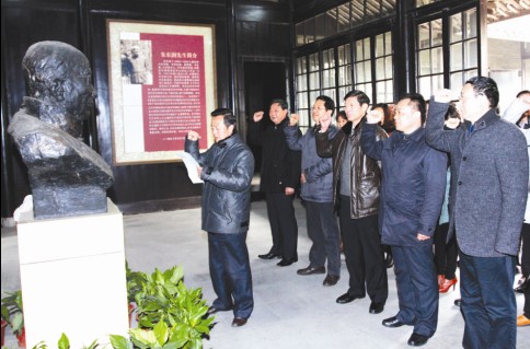 日前,市文廣新局組織機(jī)關(guān)干部走進(jìn)朱東潤(rùn)故居,參觀烈士事跡展覽、舉行宣誓活動(dòng)。