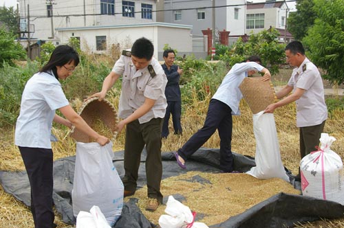 當(dāng)前,泰興市小麥全面進(jìn)入收割期。5月29日下午,天氣陰沉,天氣預(yù)報(bào)當(dāng)日晚有雷陣雨,了解到這一情況,七圩收費(fèi)站的8名黨員義工來(lái)到駐地涌興村的留守老人陸士良家麥田,幫助搶收小麥。僅僅一個(gè)小時(shí),田里的小麥已經(jīng)全部裝袋拉回老人家中。“眼看就要下雨了,多虧你們幫忙,真是太感謝你們了!”年近七旬的老人很感動(dòng),對(duì)黨員義工們?nèi)缡钦f(shuō)。 組建黨員義工助收服務(wù)隊(duì),是七圩收費(fèi)站“五幫三代 服務(wù)到家”品牌服務(wù)內(nèi)容之一,也是該站積極踐行為民服務(wù)宗旨,深入創(chuàng)先爭(zhēng)優(yōu)的重要舉措。當(dāng)前,助收服務(wù)隊(duì)持續(xù)活躍在搶收第一線,為留守、孤寡老人家庭等特殊農(nóng)戶搶收小麥,幫助加快麥?zhǔn)者M(jìn)度。 |