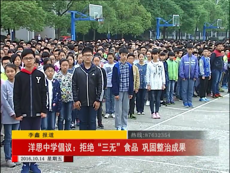 。ㄓ浾摺±铞危┮欢螘r(shí)間以來,洋思中學(xué)北大門有不少小攤販,部分學(xué)生也喜歡到路邊攤買零食。近期,相關(guān)部門對(duì)此進(jìn)行集中治理,洋思中學(xué)也對(duì)全體師生發(fā)出倡議,拒絕“三無”食品,鞏固整治成果。 10月13日,洋思中學(xué)利用課間操時(shí)間,向全校師生發(fā)出“拒絕‘三無’食品,保障身心健康”的倡議,希望全體師生拒絕無生產(chǎn)日期、無質(zhì)量合格證、生產(chǎn)廠家及來路不明的食品,養(yǎng)成健康衛(wèi)生的生活習(xí)慣。學(xué)校嚴(yán)禁從周圍小攤小販處購(gòu)買無衛(wèi)生許可的餐飲品,防止食物中毒和腸道傳染病發(fā)生,不食用流動(dòng)攤點(diǎn)銷售的盒飯,抵制低價(jià)劣質(zhì)的食品。 洋思中學(xué)還發(fā)放《告家長(zhǎng)書》,呼吁家長(zhǎng)和學(xué)校共同監(jiān)管,徹底凈化校園周邊環(huán)境;利用學(xué)校宣傳欄,向?qū)W生普及健康生活知識(shí)、文明交通出行知識(shí),提高學(xué)生的鑒別能力。 |