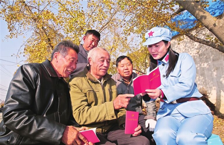 緊扣十九大精神宣講 冬日的陽光伴著飄舞的銀杏葉,簡陋的舞臺上人們穿梭忙碌著,雖然條件略顯艱苦,但大家的工作熱情絲毫沒有減少。 九點鐘,“泰興廣電主播誦讀十九大”活動正式開始,由廣播電臺的主持人們自編自導(dǎo)自演的《誦讀十九大報告》節(jié)目拉開了演出的序幕。節(jié)目選取“十九大報告中與農(nóng)村百姓生產(chǎn)生活相關(guān)的內(nèi)容,原文朗誦,原汁原味。村民們也結(jié)合自身所學(xué)所感,說出了老百姓對新時代新征程的美好憧憬。 ——“中國特色社會主義進入新時代,我們的黨一定要有新氣象、新作為,全面推進黨的政治、思想、組織、作風(fēng)、紀(jì)律建設(shè),那新時代我們黨要把什么建設(shè)擺在首位呢?” ——“黨的政治建設(shè)” 活動還設(shè)置了互動問答環(huán)節(jié),現(xiàn)場觀眾在緊張而充滿樂趣的互動搶答中學(xué)習(xí)知識、了解政策。 觀看完整場宣講的宣堡鎮(zhèn)銀杏村村民李留貫說:“泰興廣電主播走進我們基層農(nóng)村,通過通俗易懂的形式,讓我們老百姓能夠?qū)W深學(xué)透十九大報告精神,我們希望多舉行這樣的活動,既豐富我們的生活,又能讓我們學(xué)好黨的政策。” 傾情演出激發(fā)群眾奮斗熱情 形式多樣的文藝演出贏得了現(xiàn)場觀眾陣陣掌聲。誦讀活動中,句句唱詞都源自十九大報告,個個都有具體內(nèi)容指向,并通過歌舞、朗誦、合唱等多種藝術(shù)形式來呈現(xiàn),讓現(xiàn)場觀眾直呼過癮,也激發(fā)了村民們努力奮斗的決心。 宣堡鎮(zhèn)銀杏村黨總支副書記沈亞軍表示:“十九大報告把鄉(xiāng)村振興提到了一個戰(zhàn)略高度,為我們農(nóng)村的發(fā)展指明了方向。通過學(xué)習(xí)十九大報告,結(jié)合我們村的實際情況,我們利用已經(jīng)成立的三個合作社,發(fā)展電商平臺,結(jié)合特色田園鄉(xiāng)村建設(shè),真正使老百姓富起來,村集體經(jīng)濟強起來,讓我們的鄉(xiāng)村變得更加美好,把十九大精神落到實處。” 十九大勝利召開以來,市廣播電視臺突出創(chuàng)新形式,注重實際效果,通過策劃組織群眾喜聞樂見的文化活動,推動黨的十九大精神進企業(yè)、進農(nóng)村,深入淺出、潛移默化地宣傳黨的十九大精神,使黨的十九大精神家喻戶曉、深入人心。 “泰興廣播電視臺在本土有宣傳優(yōu)勢,主持人主播誦讀十九大,是有魅力和吸引力的。” 市廣播電視臺黨委副書記曹愛民表示,本次活動利用主持人主播的品牌優(yōu)勢,與老百姓面對面,零距離宣講十九大精神,更能讓老百姓看得懂、聽得懂,喜歡聽、喜歡看。 |