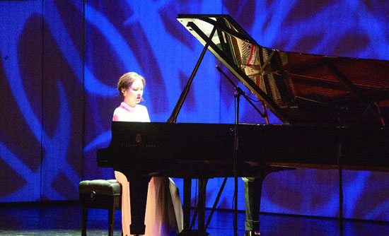 “少小離家,求學(xué)京滬,一路追尋音樂之夢(mèng)想。今日返鄉(xiāng),以肖邦經(jīng)典匯報(bào)鄉(xiāng)梓父老,以樂表琴心一片。”長(zhǎng)達(dá)2個(gè)小時(shí)的演出,朱瞳瞳技驚四座:手指在黑白琴鍵上不斷地跳躍,唯美的琴聲從指尖傾瀉而下,她似乎將觀眾帶到了肖邦那個(gè)時(shí)代,盡情訴說(shuō)著關(guān)于愛情與人生的故事。演奏的過(guò)程中,篇章之間的轉(zhuǎn)換非常流暢,觀眾也頗具音樂素養(yǎng),總會(huì)在合適的地方報(bào)以熱烈的掌聲。此次音樂會(huì),不僅是朱曈曈在家鄉(xiāng)第一次舉辦個(gè)人音樂會(huì),更是她與“音樂詩(shī)人”肖邦無(wú)限靠近的指尖之旅,無(wú)數(shù)人碰觸過(guò)的經(jīng)典,都從這位未來(lái)的“鋼琴皇后”手指下流淌,呈現(xiàn)出不一樣的解讀與詮釋。