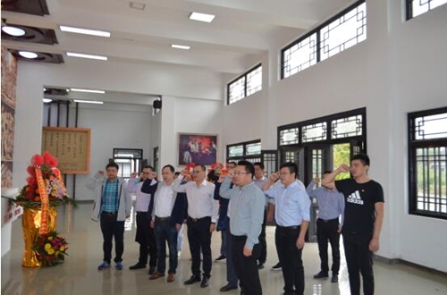 在紀(jì)念館瞻仰廳,全體人員瞻仰了泰興縣委第一任書記沈毅烈士銅像。沈毅為泰州人,1925年,25歲的他來到刁家網(wǎng),在刁家網(wǎng)地區(qū)點(diǎn)燃革命星火。從此,“要找共產(chǎn)黨,就到刁家網(wǎng)”在人民群眾中廣為流傳。1928年,28歲的沈毅沒有逃脫敵人的追捕,光榮就義,永遠(yuǎn)地離開了刁家網(wǎng),但是他留下的革命火種卻一直在燃燒。此后,歷經(jīng)土地革命、抗日戰(zhàn)爭和解放戰(zhàn)爭,中共泰興縣委先后有力地支援了黃橋決戰(zhàn)和以黃橋?yàn)橹行牡奶K中抗日民主根據(jù)地建設(shè),配合華中野戰(zhàn)軍取得了彪炳軍史的蘇中七戰(zhàn)七捷,最終獲得了泰興全境解放。