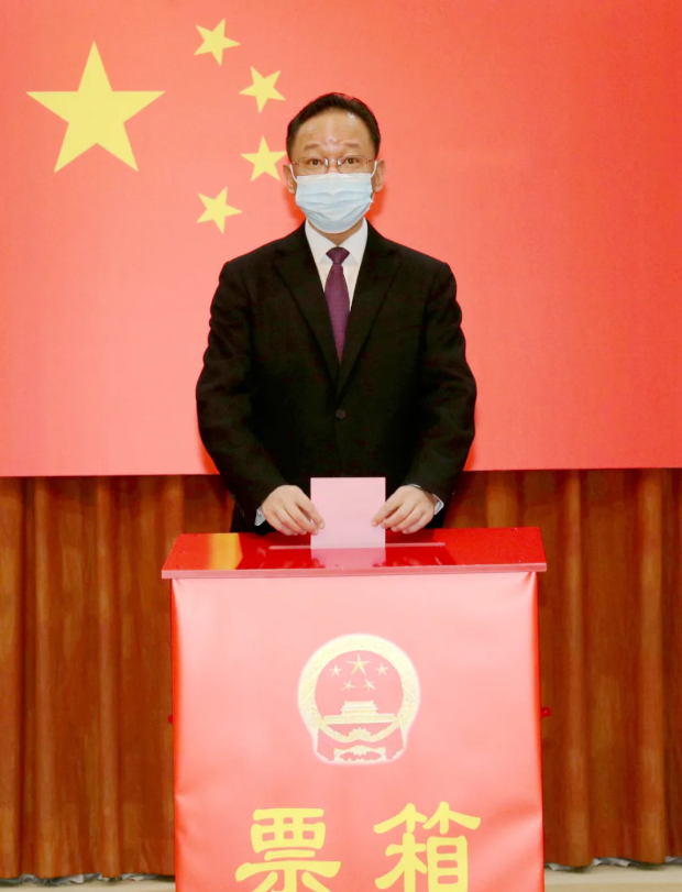 市第177選區(qū)市委辦公室投票站,五星紅旗鮮艷奪目,鑲嵌著國(guó)徽的紅色票箱端放正中,投票工作規(guī)范有序,現(xiàn)場(chǎng)氛圍莊重?zé)崃。上?時(shí)30分許,張坤來到市第177選區(qū)市委辦公室投票站,仔細(xì)了解有關(guān)選舉事項(xiàng)的說明,拿出選民證交給工作人員核驗(yàn),領(lǐng)取一張選票,在寫票處認(rèn)真填寫選票后,走到票箱前鄭重投下自己的一票。