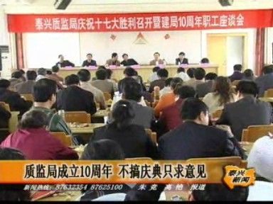 - 2007-10-28 20:55:41質(zhì)監(jiān)局成立10周年 不搞慶典只求意見
