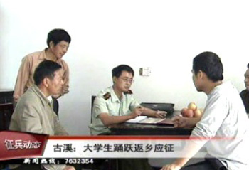 - 2006-10-17 09:00:26古溪鎮(zhèn)在外大學(xué)生踴躍返鄉(xiāng)應(yīng)征
