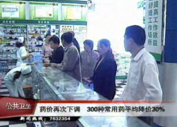 • 2006-09-17 22:08:06藥價(jià)再次下調(diào) 300種常用藥平均降價(jià)30%