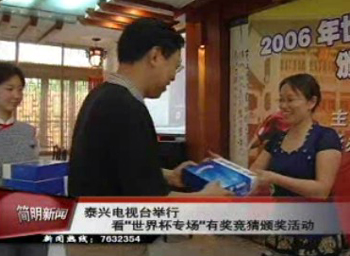 - 2006-06-12 23:49:57泰興電視臺舉行看“世界杯專場”有獎競猜頒獎活動