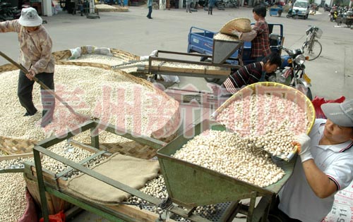 - 2008-10-13 07:57:42泰興市宣堡銀杏市場收購商正在分級篩選和加工白果